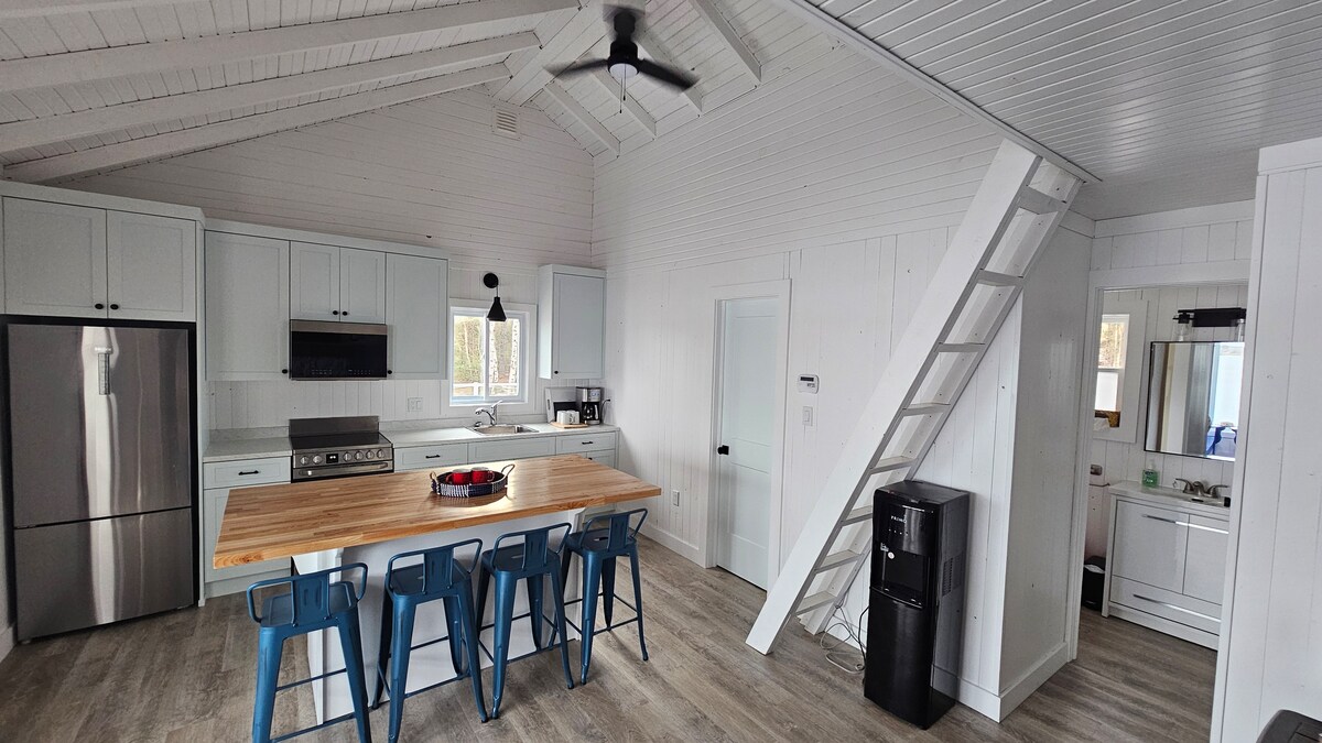 Pary! Wybierz się do prywatnego lasu, aby cieszyć się prywatnym wypoczynkiem w nordyckim spa nad spokojnym jeziorem nad rzeką Saint John. Oferujemy jacuzzi dla par, saunę na podczerwień i hamaki, które pozwolą Ci zrelaksować się o każdej porze roku. Spotkaj się z innymi przy ognisku. Zrelaksuj się w otwartym wnętrzu z luksusowymi, nowoczesnymi udogodnieniami. Spoglądaj w gwiazdy z łóżka pod ogromnymi świetlikami. Zatrzymaj się i odpocznij lub ciesz się zabytkowymi lokalnymi sklepami i rzemieślnikami z Gagetown i Hampstead.