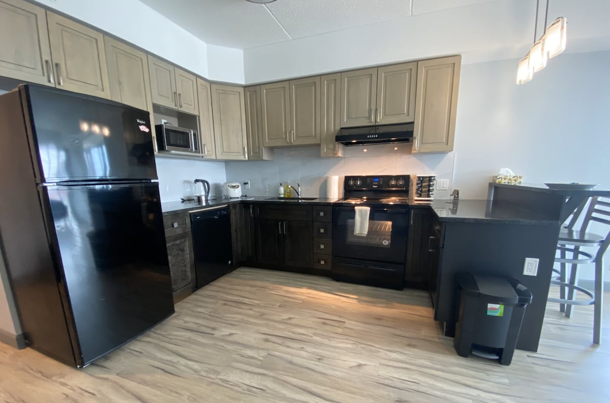 Witamy w naszym otwartym wieżowcu koncepcyjnym z widokiem na miasto w samym sercu Kitchener-Waterloo, gdzie styl i wygoda spotykają się, aby zapewnić niezapomniany pobyt. Ten otwarty apartament koncepcyjny z 1 sypialnią, zaprojektowany w przemyślany sposób, aby pomieścić do 4 osób, dzięki czemu jest idealny dla par, małych rodzin lub osób podróżujących w pojedynkę, które szukają nowoczesnego i przytulnego miejsca na wypoczynek. ✔ W pełni wyposażona kuchnia ✔ Wygodna sypialnia z łóżkiem typu queen-size ✔ Open Concept Living Area ✔ Szybkie Wi-Fi ✔ Darmowy parking ✔️Dostęp do siłowni Dowiedz się więcej poniżej!