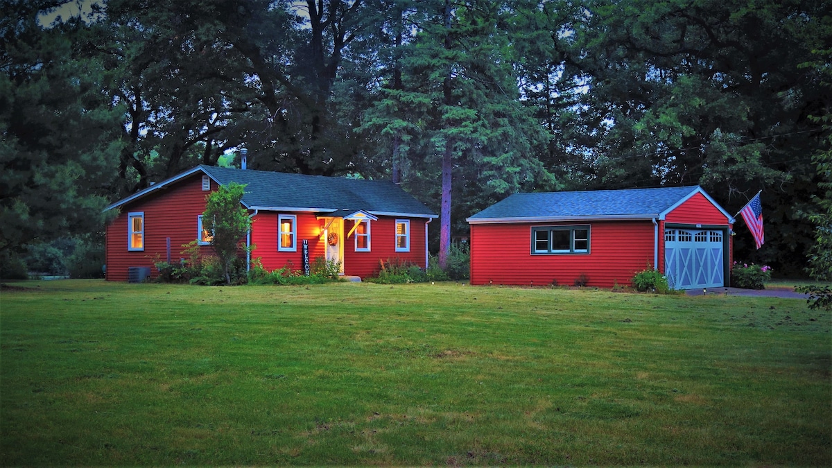 Greetings Airbnb viewers! Come visit our wonderful riverfront cottage, ready and waiting. A two bedroom 750 sqft house with 1 bathroom on just under an acre property. A special place to relax, do some fishing, grilling, and roasting marshmallows on the fire. Located in a secluded unincorporated Fox River neighborhood in Kane County just a half mile from Blackhawk waterfall via bike path. The subdivision is hidden between the Jon J. Duerr and Blackhawk forest preserves.
