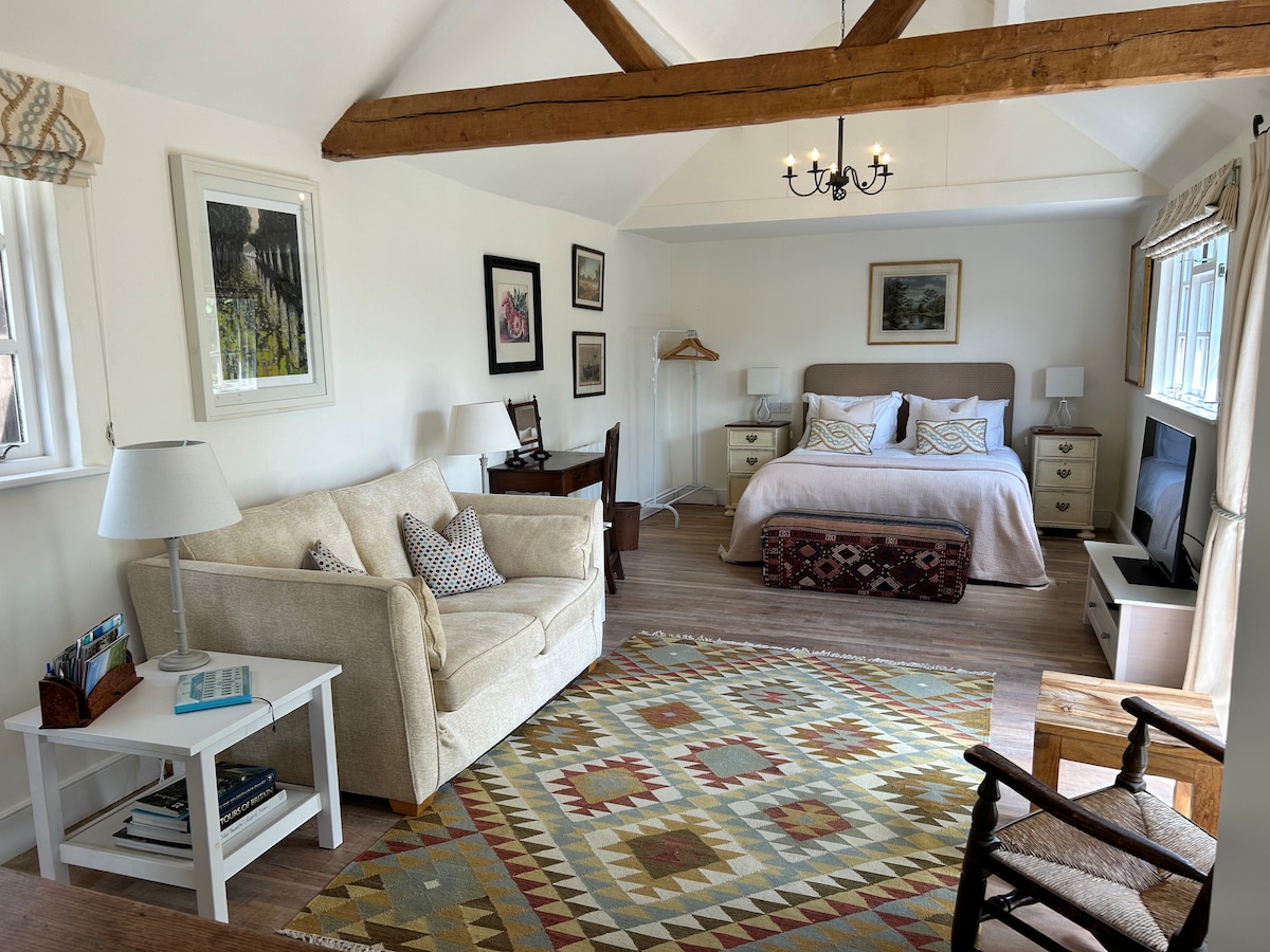 Delaford Stables to całkowicie niezależny apartament gościnny, połączony z uroczym domkiem z epoki na obrzeżach wioski Etchingham. • Zakwaterowanie obejmuje sypialnię z podwójnym łóżkiem, duży salon ze sklepionym sufitem oraz nowoczesną łazienkę z prysznicem i toaletą. • Nieruchomość została niedawno odnowiona zgodnie z najwyższymi nowoczesnymi standardami, zachowując jednocześnie charakter oryginalnych stajni i siodlarni. • Bezpłatne PROSECCO po przyjeździe • ŚNIADANIE KONTYNENTALNE wliczone w cenę