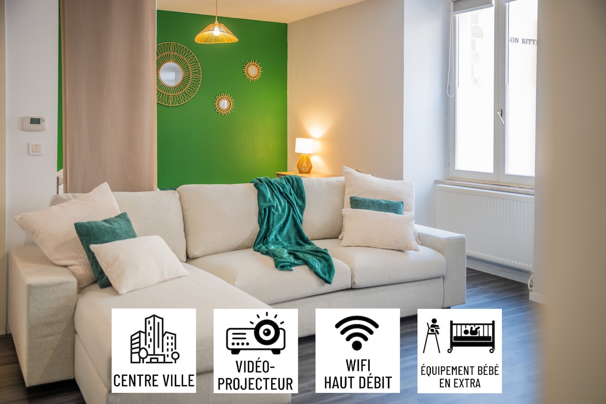 Witamy w naszym apartamencie kina domowego, eleganckiej i wyjątkowej przestrzeni u podnóża dworca kolejowego, w pobliżu centrum Mulhouse. Idealne dla gości szukających wygody i relaksu,. Ciesz się filmem na Netflixie z dużym ekranem. Nowoczesne wnętrze i zabytkowe akcenty, tworzące domowy klimat. Dwa kroki do miasta ,. Idealny dla par, rodzin lub przyjaciół, ten apartament jest idealną kryjówką do odkrywania lub odpoczynku.