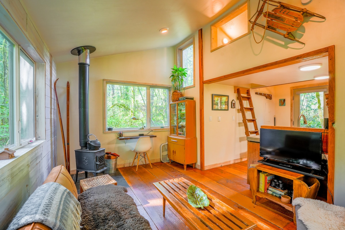 Ciesz się odmładzającym pobytem podczas podróży do Mt. Hood w naszej spokojnej, przyjaznej dla zwierząt chatce nad rzeką. Położona nad rzeką Salmon, ta chatka jest pełna uroku lat 60. i wyposażona w nowoczesne udogodnienia, takie jak wanna z hydromasażem, szybkie Wi-Fi i pralka/suszarka, aby Twój pobyt był komfortowy. Zrób s'mores nad rzeką lub przytul się z dobrą książką przy kominku. Kilka barów i restauracji znajduje się w odległości 5 minut jazdy, a do SkiBowl można dotrzeć w zaledwie 20 minut.