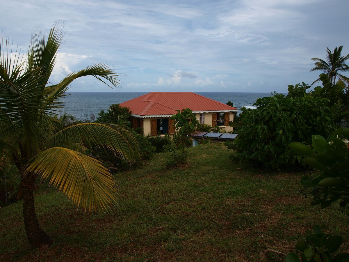 The Cottage at Villa PassiFlora represents an excellent choice for individuals or couples who don’t need the space of the Villa, and it adds the option of stays of fewer than 4 nights. The cottage is on the Villa PassiFlora property, surrounded by forest, fruit trees and tropical plants, with a view through the forest to the Atlantic Ocean. Guests have ready access to the trail leading to Pointe Baptiste.