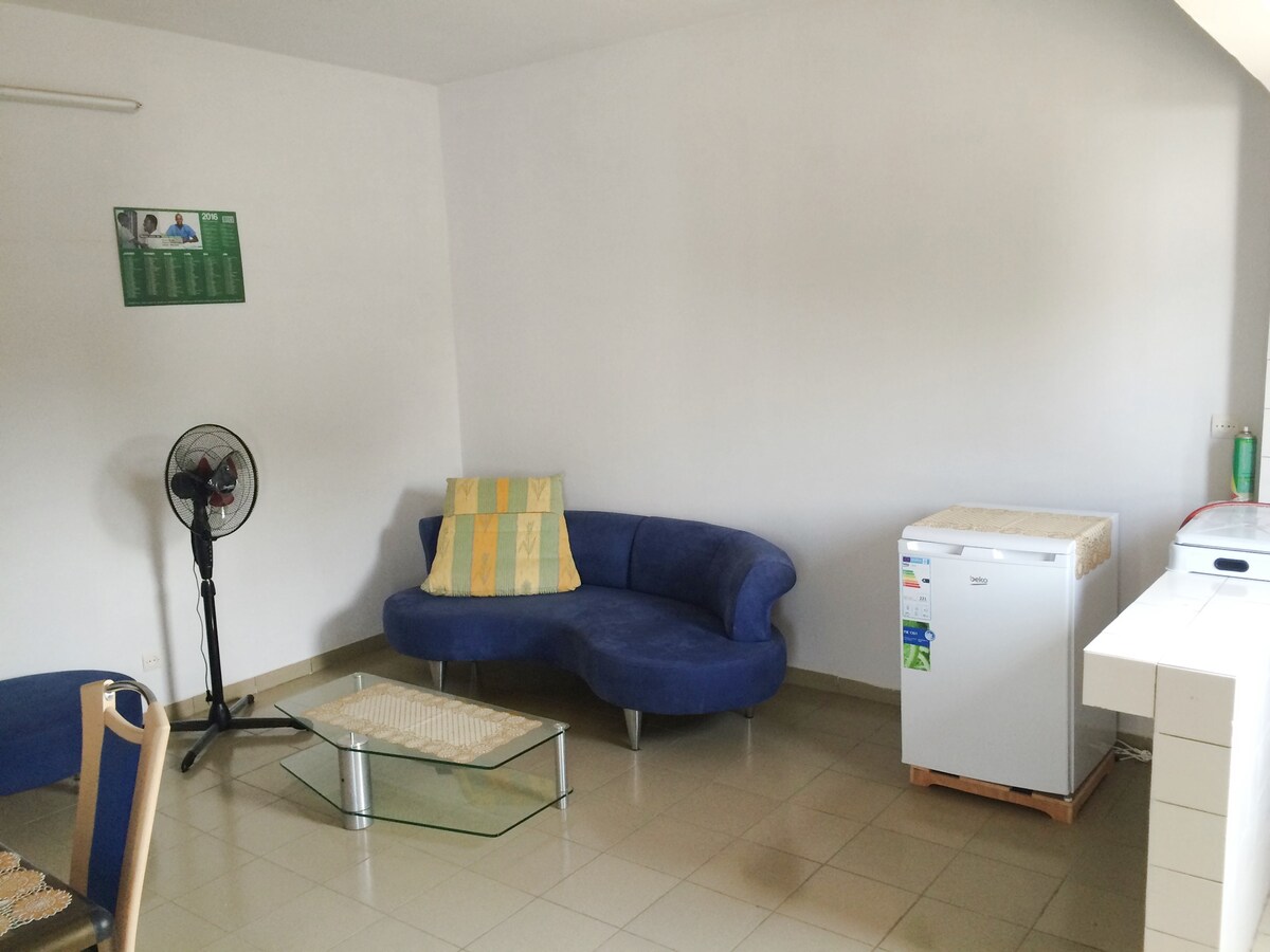 Oferujemy w pełni umeblowany i obsługiwany apartament. Znajduje się przy Ring Road Central, zaledwie 15 minut od lotniska, 10 minut jazdy do Osu i centrum Akry. Pokochasz nasze miejsce, ponieważ jest wygodnie urządzone w nowoczesnym stylu i w pełni wyposażone we wszystko, czego potrzebujesz, aby Twój pobyt był niezapomniany i relaksujący. Nasze miejsce jest dobre dla par, samotnych poszukiwaczy przygód, osób podróżujących służbowo i dużych grup.