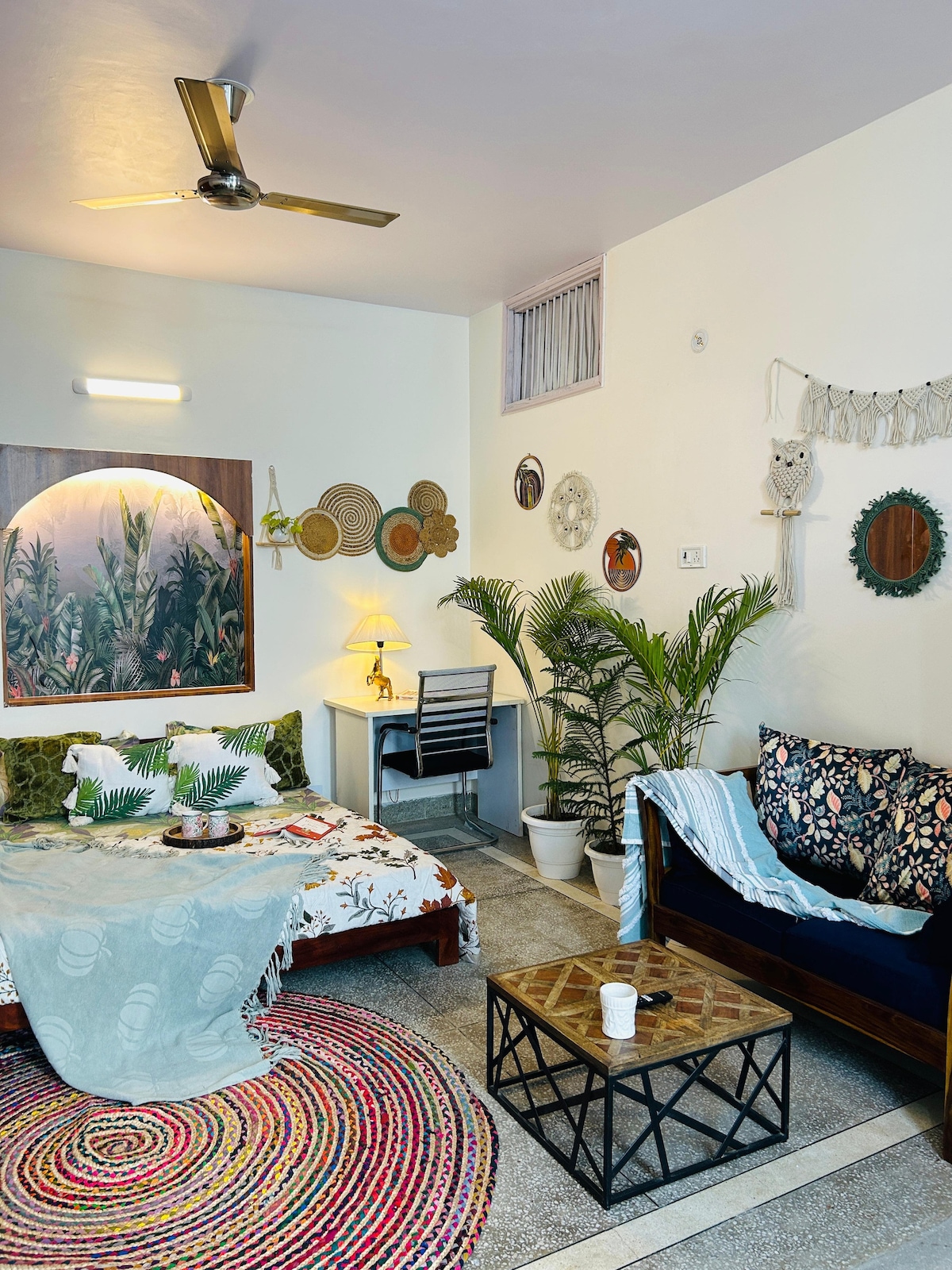 Położony w samym sercu południowego Delhi @GK 1 witamy w Twoim skromnym domu. Zaprojektowana w formacie Studio dla tych, którzy kochają przestrzeń i prywatność, ta mała przestrzeń ma wszystko, czego potrzebujesz podczas krótszego i dłuższego pobytu. Posiada małą, ale dobrze wyposażoną kuchnię i łazienkę. Z nową klimatyzacją Panasonic Split Ac zainstalowaną w 2025 roku Kluczowym elementem, na który należy zwrócić uwagę, jest wejście, które prowadzi przez spiralne schody z tyłu naszego domu, który jest położony bardzo centralnie, z parkiem do biegania i parkiem dla psów w pobliżu