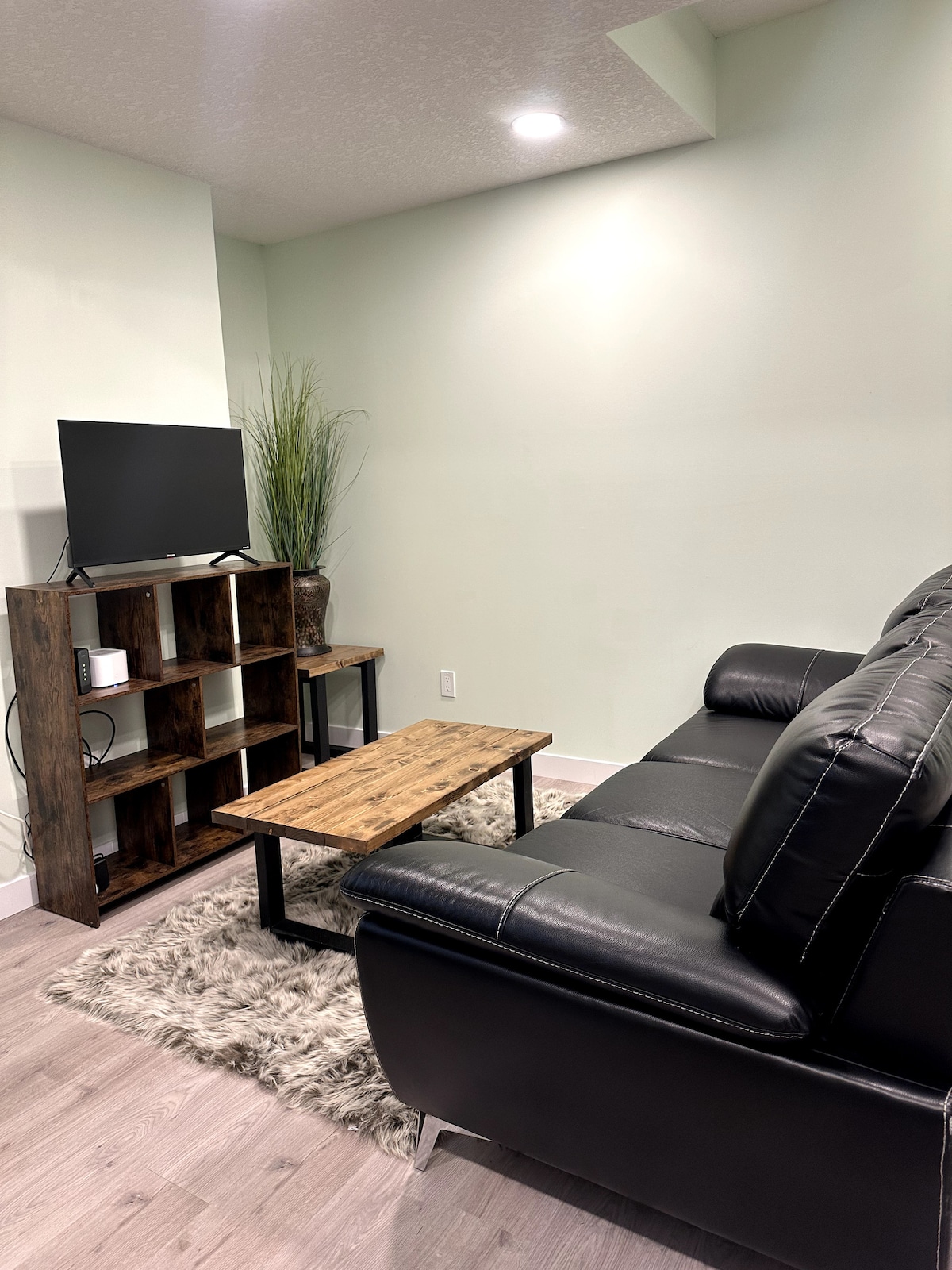 Cozy Cove offers a spacious 2-bedroom basement suite in the peaceful Trumpeter by Big Lake community. Just minutes from West Edmonton Mall, enjoy easy shopping, dining, and entertainment access. The suite features cozy sleeping arrangements, a full bathroom, in-suite laundry, high-speed Wi-Fi, and a Smart TV. With a private entrance, self-check-in, and complimentary snacks, it’s the perfect home away from home for families, couples, and solo travellers.