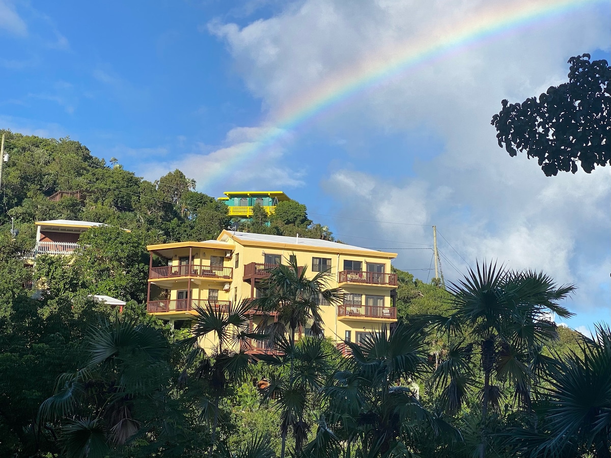 Greetings! We invite you to stay with us at Estate Crown & Hawk. Nestled in the cloud kissed hills of Crown Mountain and Hawk Hill. This newly renovated home is 5 mins away from the nearest beach. If peace and tranquility is what you're seeking on your next vacation or business trip, then you won't be disappointed with what Estate Crown & Hawk has to offer. From the 12' lofted ceilings to the brand new appliances and executive furniture, this apartment is loaded with everything one could need.