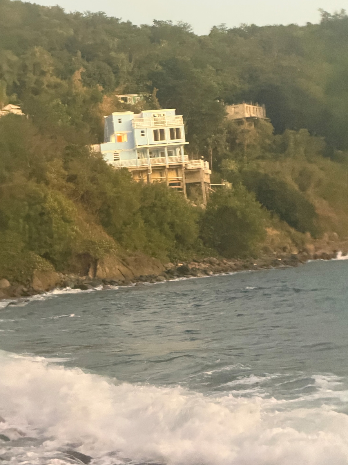 Take it easy at this unique and tranquil getaway. Look and listen to the waves from your bed , rooftop deck , windows , deck off the living room . Enjoy roof top outdoor shower overlooking the tranquil blue waters . See the cruise ships in the distance coming from Puerto Rico . Bask in the sun by the infinity pool . Watch the sunset sipping at your cocktails, or reading a book ….. enjoy the spectacular sun set from the infinity pool , deck or your bedroom