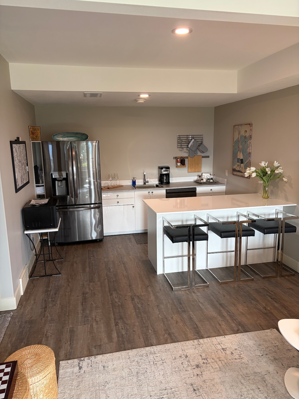 Luksusowy apartament z 2 sypialniami w samym sercu kraju wina West Kelowna. Krótki spacer do winnicy Mission Hill i kilka minut od wielu innych winnic, np. Quails Gate, Boucherie, Hatch, Frind. W pobliżu parków, plaż, restauracji i wszystkich udogodnień. Panoramiczne widoki ze wszystkich pokoi, 75-calowy telewizor 4k, 1 łóżko typu king, 1 łóżko typu queen, zmywarka Bosch, pralka, suszarka, ogrzewane podłogi w łazience, parking na podjeździe. Idealny wypoczynek dla jednej lub dwóch par lub każdego, kto szuka spokojnego wypoczynku w kraju wina.