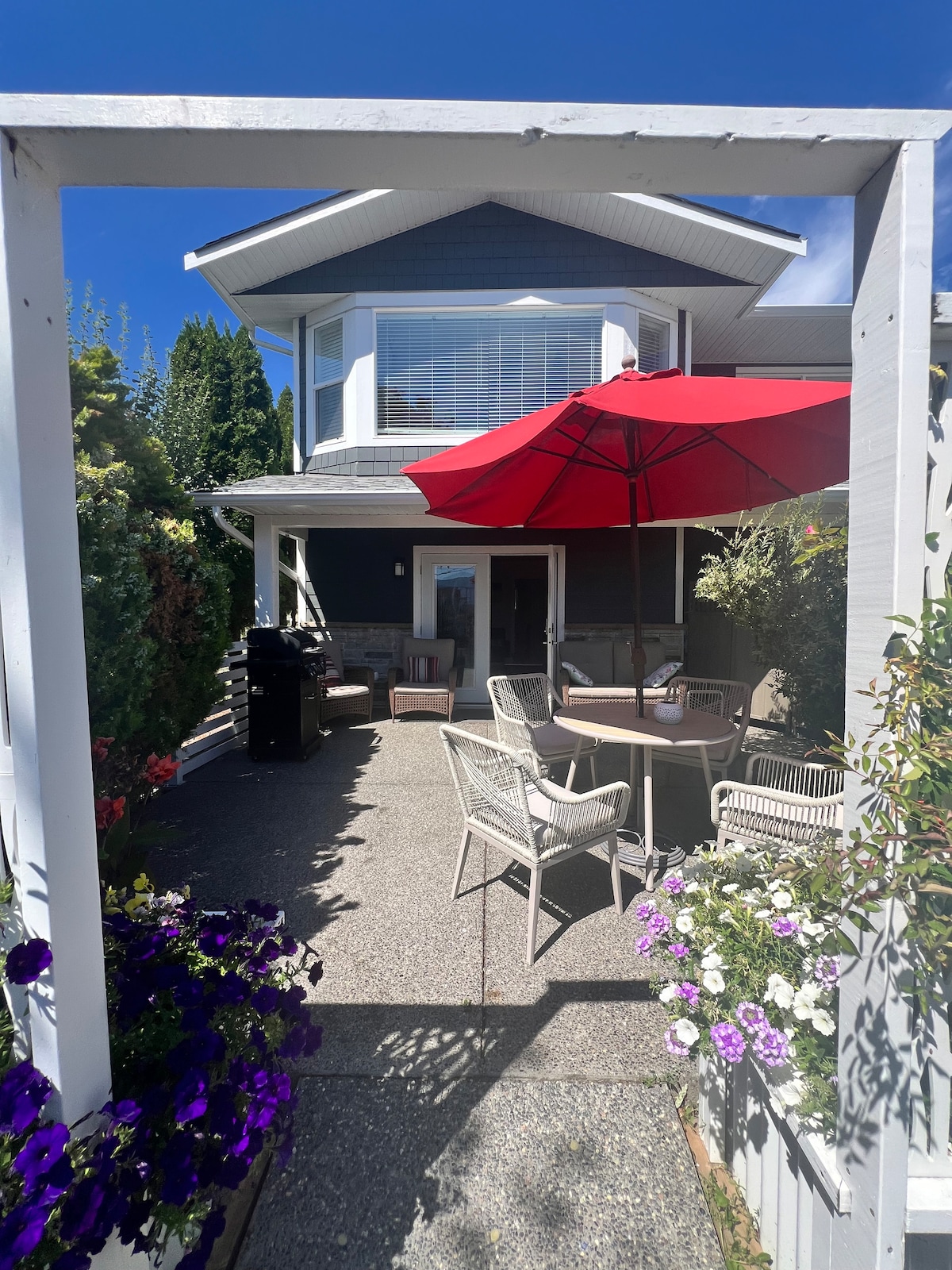 Przygotuj się na WSPANIAŁE wakacje – nasz samodzielny apartament oferuje dom z dala od domu, z mnóstwem prywatnej przestrzeni, w tym zewnętrzną kuchnią…Witamy w Jewel of Lake Okanagan – nasza lokalizacja w Peachland oferuje pełny frontowy SPECTACULAR boomerang widok na jezioro, które rozciąga od Kelowna do Naramaty. Nasza 2-akrowa posiadłość znajduje się na zboczu wzgórza pokrytego winnicą. Jest tu zewnętrzne palenisko do użytku sezonowego i jest to nasza jedyna wyznaczona strefa dla palących. + BONUSOWE jacuzzi na dolnym pokładzie