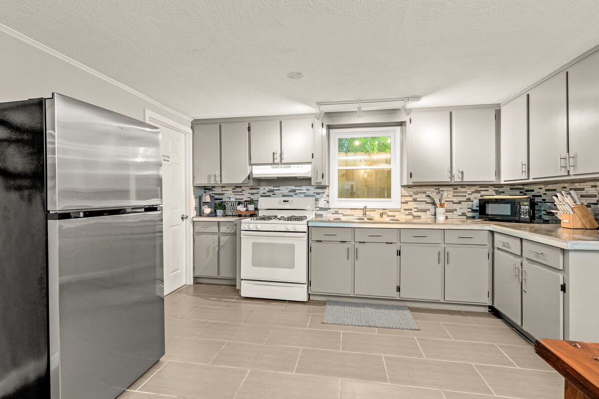 Oasis, zbudowana w 1957 roku i pięknie odnowiona z nowoczesnymi wykończeniami, w tym wszystko, czego potrzebujesz podczas pobytu. Nasz mały dom o powierzchni 420 stóp kwadratowych z 1 sypialnią może pomieścić maksymalnie 3 osoby, zawiera 1 łóżko typu queen, 1 sofę do spania, 1 materac typu queen. Wnętrze wnętrze domu znajduje się w pełni zaopatrzona kuchnia, sypialnia i łazienka. Czekają na Ciebie pralka i suszarka, podstawowe artykuły pierwszej potrzeby i przybory toaletowe, a także ukryty ogród z grillem. Nie szukaj dalej swojego kawałka raju. Bądź naszym gościem w The Oasis!