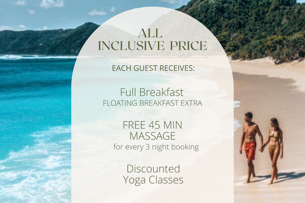 Zaledwie kilka kroków od nieskazitelnie białych plaż Selong Belanak, Burudika Bungalows oferuje cztery piękne wille otoczone bujnymi tropikalnymi ogrodami. Twój pobyt obejmuje 1 bezpłatny bilet (na osobę) do naszej nowej sauny i łaźni każdego dnia. To idealne miejsce, aby się zrelaksować i odpocząć podczas pobytu. Zrelaksuj się przy basenie i ciesz się bezpłatnym śniadaniem przygotowanym z lokalnych produktów ekologicznych. Nie możemy się doczekać, by Cię powitać!