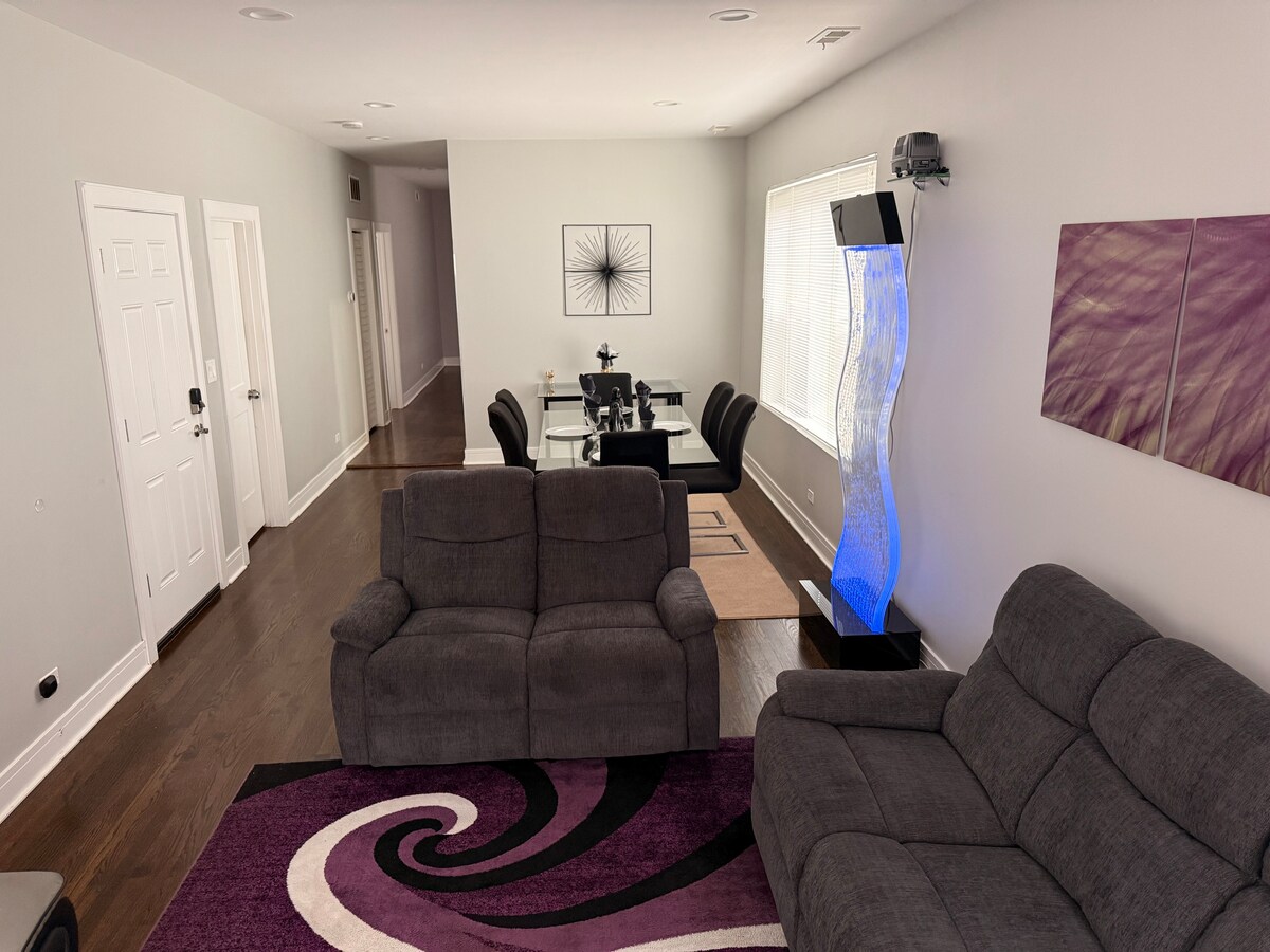 Enjoy a fully renovated first-floor 2-bedroom apartment on a peaceful, tree-lined street. Clean, modern, and designed for comfort and tranquility. Steps from dining and shopping, with easy access to the Metra, CTA Pink Line, and direct bus to Midway. Downtown Chicago is 20 minutes away; the United Center and Soldier Field just 15 minutes. A stylish, private retreat combining luxury, comfort, and convenience.