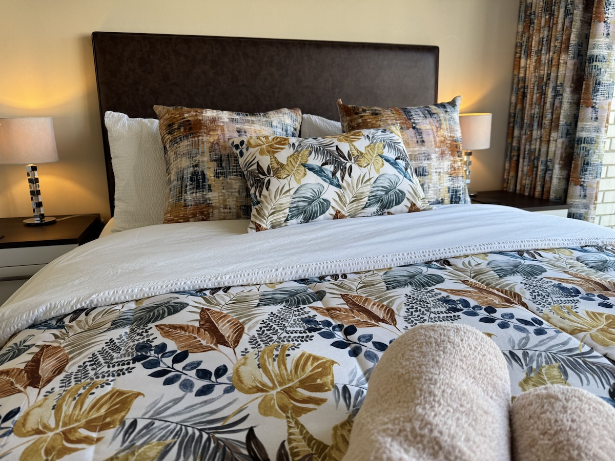 Przestronna sypialnia z podwójnym łóżkiem lub dwoma pojedynczymi. W pobliżu plaży.