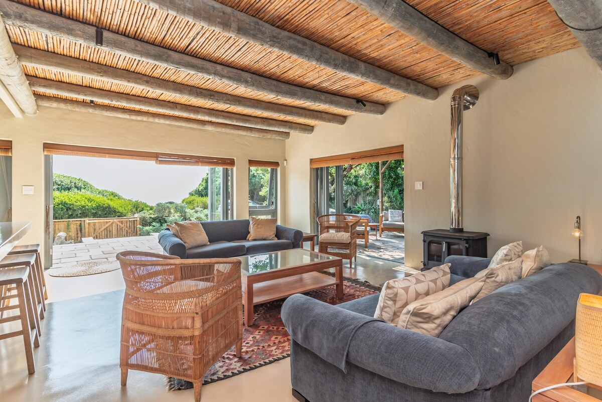 Experience modern comfort in this exceptional home perched on a prime spot within the coveted L’Agulhas Private Nature and Game Reserve. Relax in this distinctive retreat, a haven for nature enthusiasts. This private, contemporary residence provides a perfect home away from home, blending ocean and nature views while remaining conveniently close to shops, beaches, and the national park. Featuring a split-level design, which is ideal for remote working and general privacy within the house.