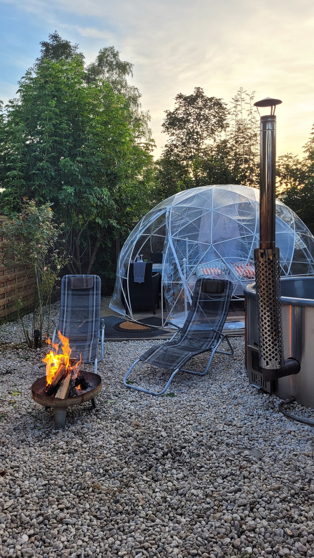 Ein Himmelbett der besonderen Art: Beobachte Sternschnuppen gemütlich vom Bett aus und verbringe erholsame Tage fernab vom Alltagsstress. Die Bubble eignet sich für einen romantischen Aufenthalt zu Zweit und für alle, die wiedermal den Kopf auslüften möchten. Hier bucht ihr kein Hotelzimmer, sondern ein besonders Erlebnis in der Natur ♡. Als Highlight bieten wir einen Hot Tub mit Sprudelsystem und Unterwasserbeleuchtung an (optional zubuchbar für 99€/Nacht, jeder weitere Tag 69€).