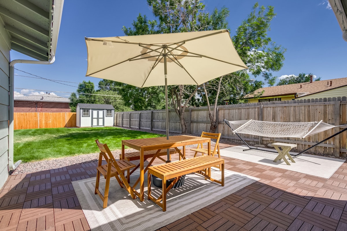 Witamy w naszym świeżo odnowionym domu z 3 sypialniami i 2 łazienkami w Westminster, w którym znajdziesz: • Własną bieżnią Peloton • Wszystkie nowoczesne akcenty • Idealne do pracy zdalnej dzięki błyskawicznemu Wi-Fi i 2 biurkom • Duże prywatne podwórko z przestronnym patio, jadalnią na świeżym powietrzu i hamakiem • Łatwy dostęp do Denver (15 min) i Boulder (25 min) Zarezerwuj teraz, aby zapewnić sobie niezapomniane wrażenia w tym klejnocie Kolorado!