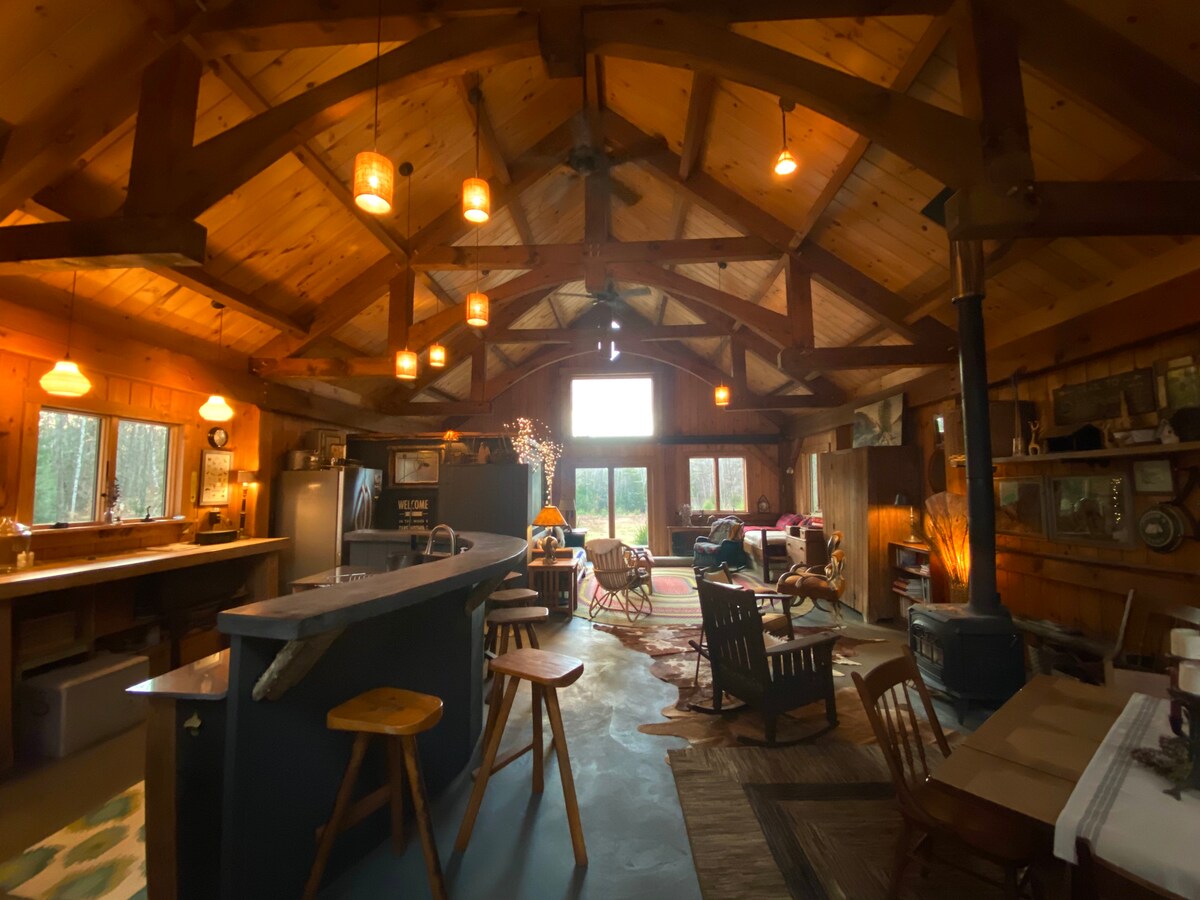 This delightful newly-built cabin with gorgeous beautiful mountain views offers privacy and sounds of the brook below. Camp TwoSome is cozy, sweet and lovely. Located on a quiet road surrounded by woods. Elsewhere on our family compound, we offer a Japanese hot tub and cedar Sauna (available for private booking experiences), on-site walking trails and a new Bakery. Close to Gore and Garnet Hill for skiing. Glamping tents and other cabins available. In summer we offer wood fired pizza.