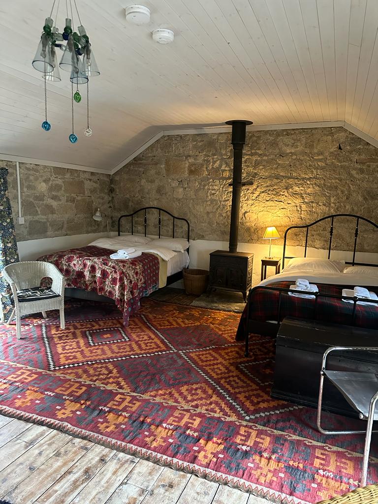 „Stable Cottage” to stara tradycyjna, przekształcona kamienna stodoła, w pobliżu naszego zabytkowego starego gospodarstwa. Zachowuje wiele oryginalnych elementów, takich jak oryginalny stary, naturalny dach, stare belki, podłogi z deskami sosnowymi, odsłonięte oryginalne kamienne ściany itp. Jest bardzo cicho i spokojnie, na małej działającej farmie upraw. Pierwotnie była to stajnia, w której konie były osłonięte i karmione przez zimowe miesiące, podczas gdy pszenica, pasza owsa itp. była przechowywana na poddaszu nad głową.