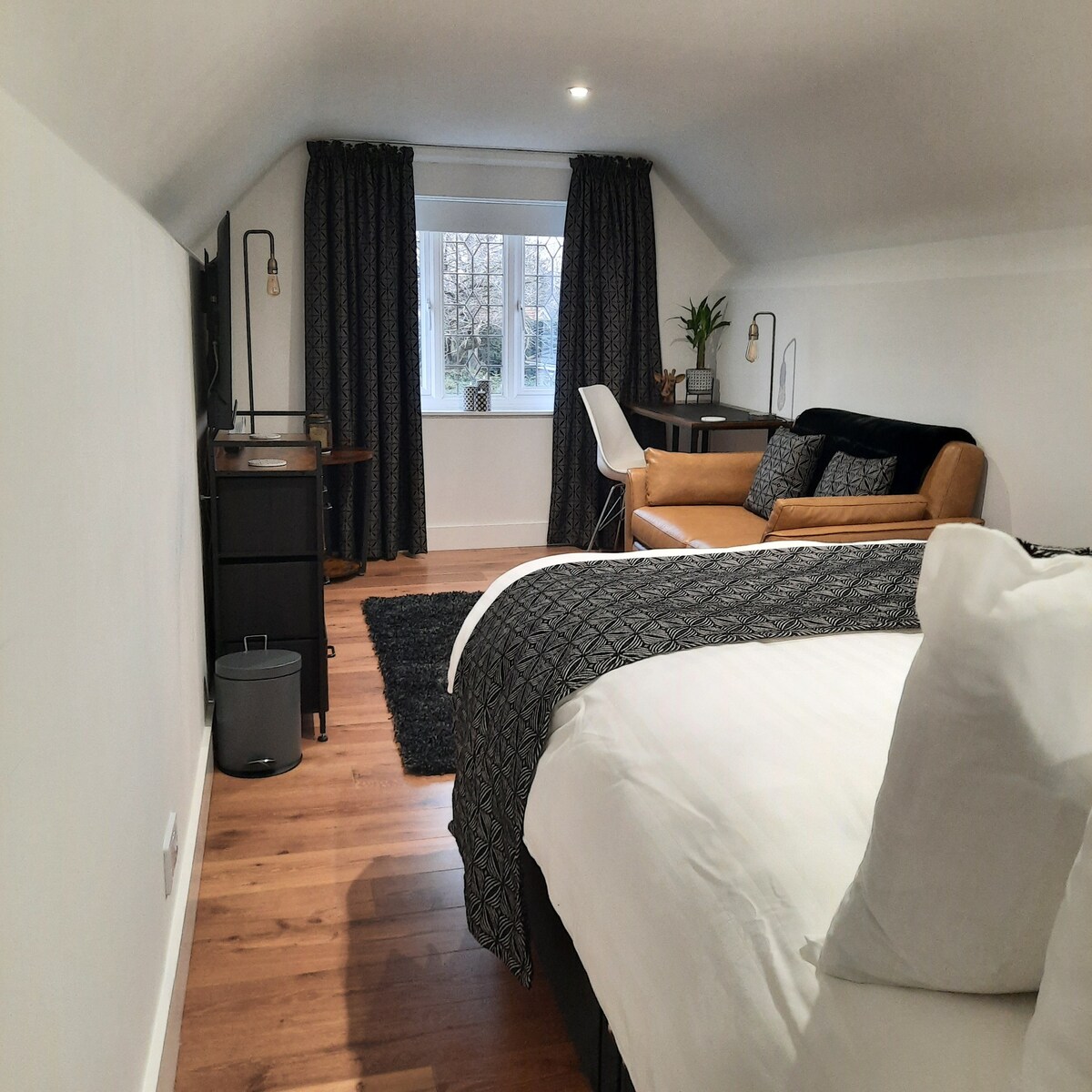 Odpocznij i zrelaksuj się w tym przytulnym, samodzielnym pokoju z łóżkiem typu king size i dużą łazienką z kabiną prysznicową, otoczonym polami i otwartymi przestrzeniami, budząc się w spokoju i ciszy na wpół wiejskiego otoczenia. Dostęp do głównych tras do Stamford, idealna lokalizacja dla odwiedzających wydarzenia w Burghley House, Rutland Water, Peterborough, Boston i Norfolk. Pokój wyposażony jest w lodówkę, kuchenkę mikrofalową, toster i zestaw do parzenia kawy. Zrelaksuj się tuż za drzwiami na tarasie.