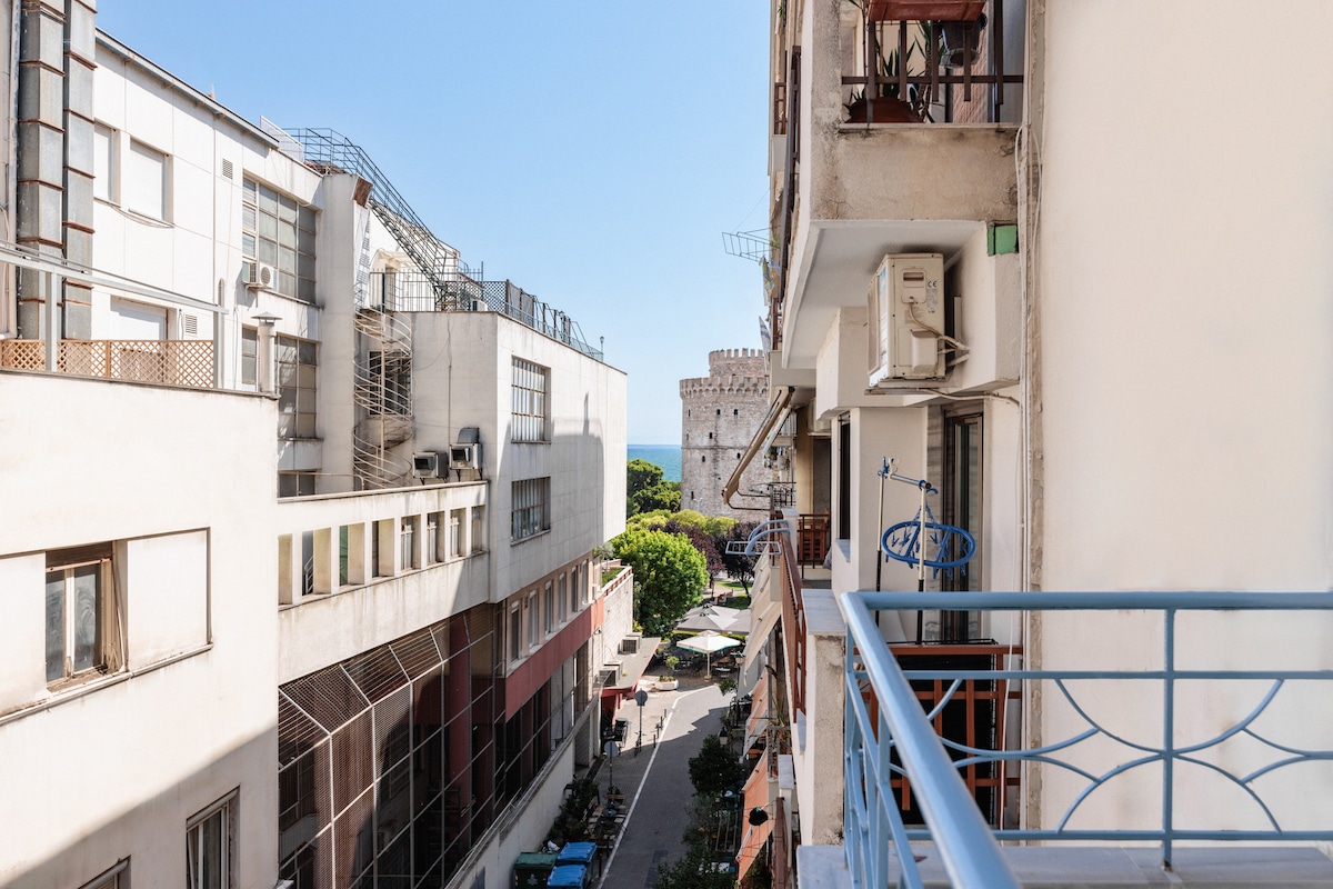 - Miejsca na pobyt z tarasem Biała Wieża w Salonikach
