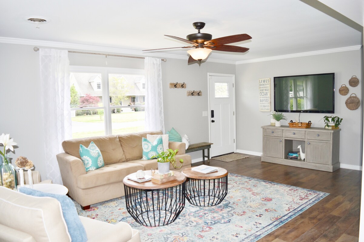 Pet Friendly, monthly rates available. Farmhouse-inspired studio apartment just minutes from the beach, close to outlets, movies, the Breakwater Junction trail, breweries, and tons of restaurants and entertainment. Take a quick bike ride to Cape Henlopen or save time and money on parking meters with a bus stop just down the street. As a seasoned Airbnb Superhost, I'd like to give you the best experience possible when staying with us. .07 Miles to the Breakwater Trail - 4 minutes on a Bike
