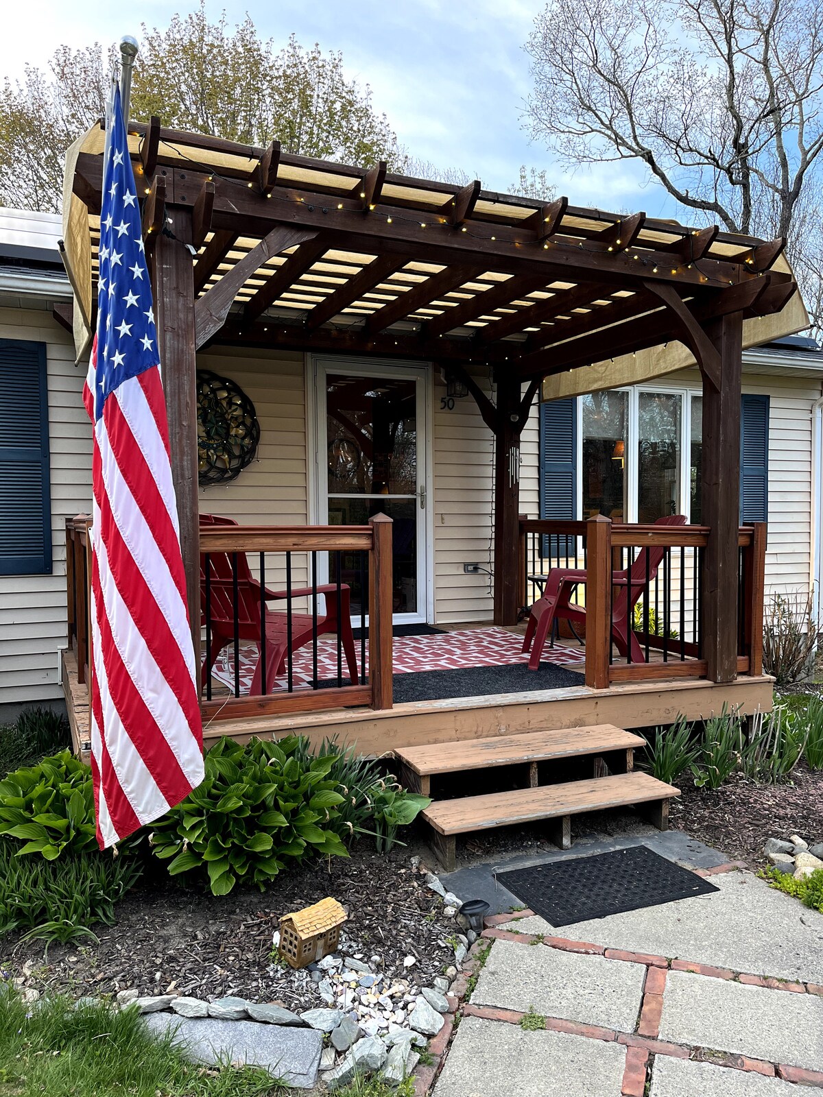 Attached to a family home but its own private space—including a private entrance, dedicated parking space, small deck, and lawn area with seating—this sunny studio is in the walkable heart of Wakefield, near URI, beaches, Newport, bike path. Queen bed; queen sleeper couch; best suited to 2 adults (the sleeper couch works best for children). Fridge, micro, coffee, grill (no oven). Allergy friendly: Free & Clear laundry products; no pets. Self check-in. Automatic discount for longer stays.