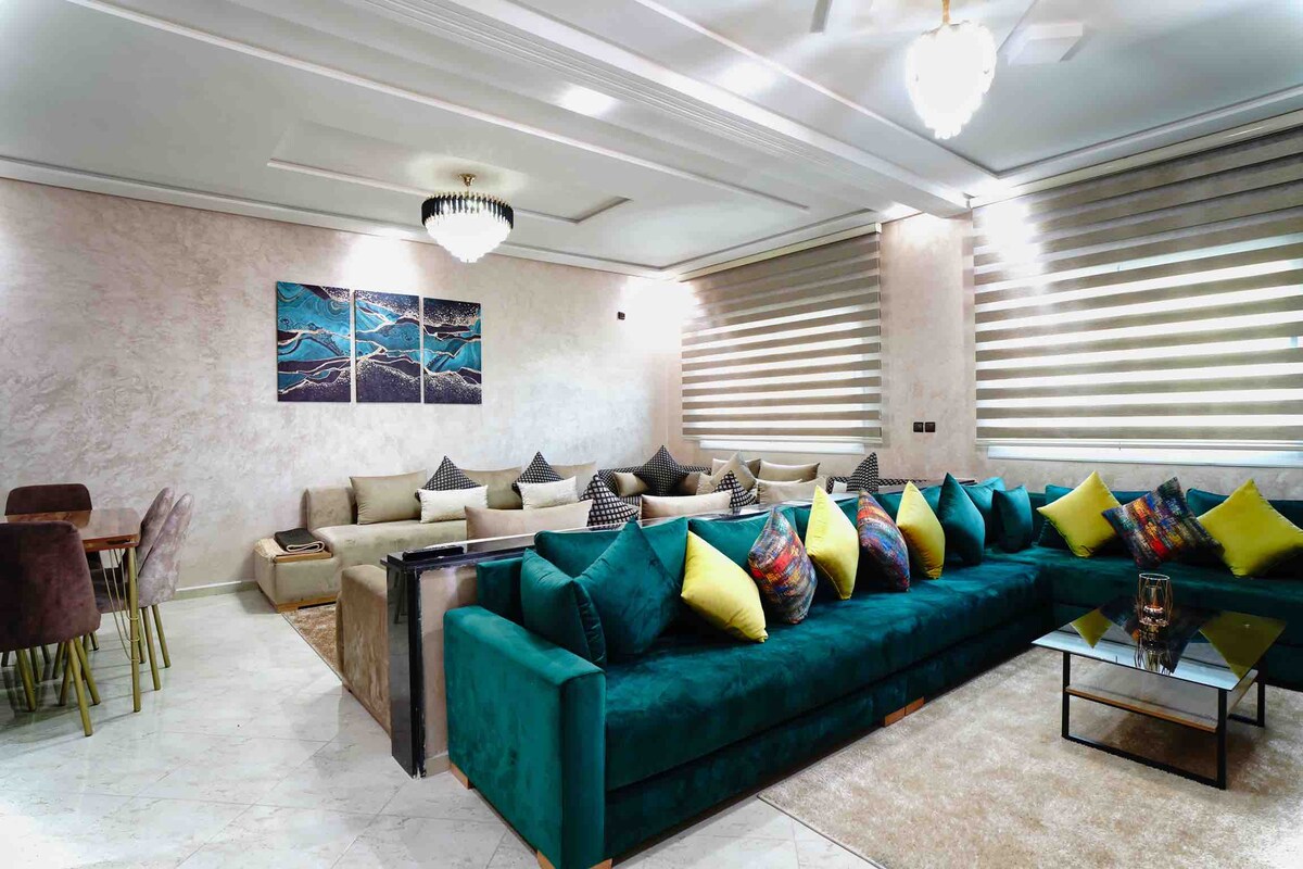 Witamy w naszym przestronnym apartamencie w samym sercu Fezu. Dzięki 3 sypialniom, 5 balkonom, panoramicznemu widokowi bez sąsiadów i szybkiemu internetowi jest to idealne miejsce do odkrywania miasta. Kilka minut od starej medyny i 2 minuty spacerem od dworca kolejowego w Fes Zrelaksuj się w przestronnym salonie, skorzystaj z dobrze wyposażonej kuchni i apartamentu dla rodziców z własną łazienką i klimatyzacją. Apartament posiada windę, 2 łazienki, 3 toalety i obszerną przestrzeń o powierzchni 145 m².