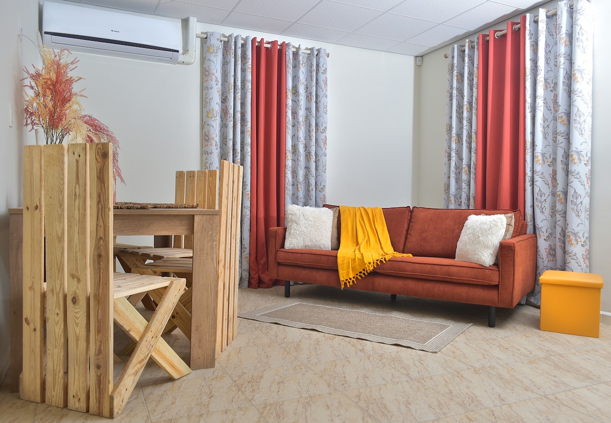 Ciesz się komfortowym pobytem w naszym przestronnym apartamencie dwuosobowym w RDR Apartments, Curaçao. Idealne dla rodzin lub grup, oferuje dwie sypialnie, w pełni wyposażoną kuchnię, salon, łazienkę i prywatny balkon lub taras. Goście mają dostęp do wspólnego basenu i bezpłatnego Wi-Fi. Właściciel ma przyjazne yorkshire teriery, które są tylko w ogrodzie/prywatnym domu. Spokojna lokalizacja w pobliżu plaż, restauracji i lokalnych atrakcji.