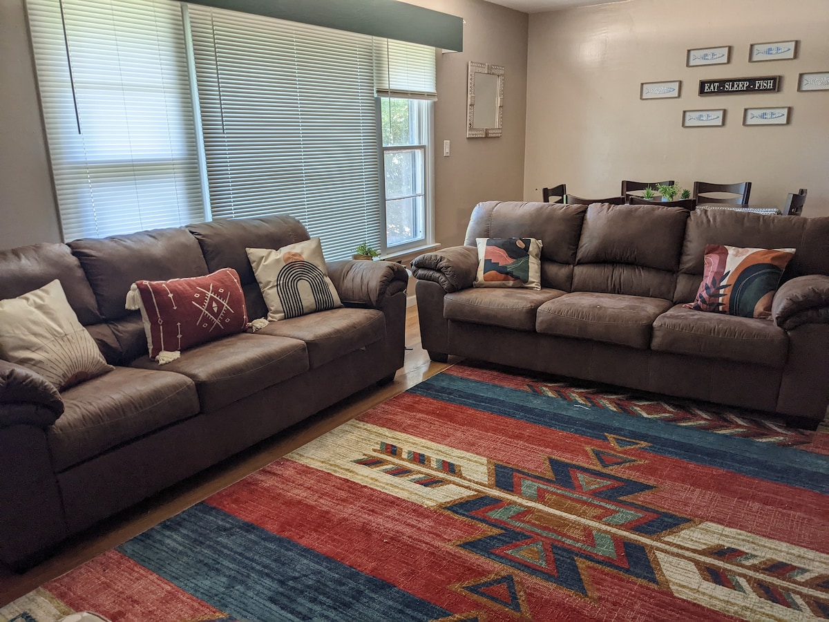It’s always a brew-ti-ful day @ the NEW Coffee Bean. Guests can’t wait to rise & grind over to the coffee bar where you can pick out a Rae Dunn mug based on your current mood! A few perks include; washer/dryer, office area, king bed, walk-in closets, ceiling fans, black out curtains and comfy sectional. The Coffee Bean is the perfect blend of cozy furnishings, soft linens & convenient location to downtown Marion/Route 13 & I-57. With over 160 ( 5 star reviews) see why it's so highly rated!