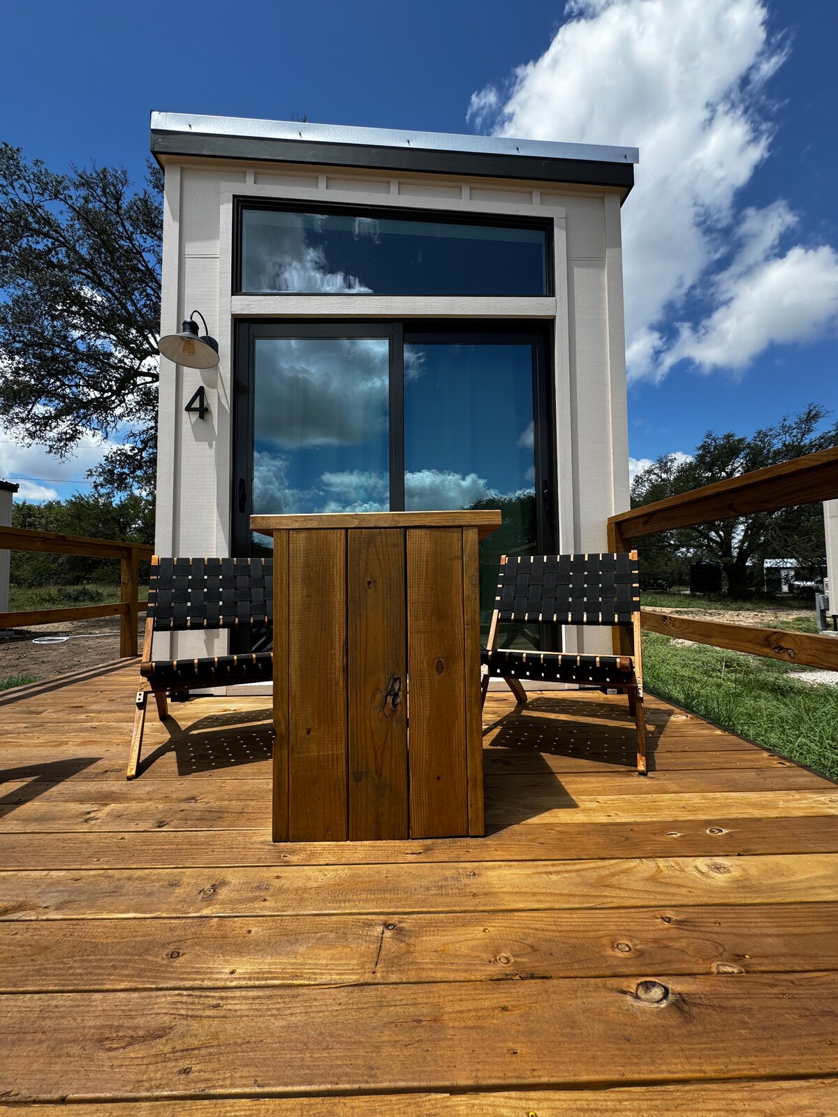 Nowoczesny domek parterowy na skraju miasta. Idealne na wyjazd dla par. Nowoczesne, a jednocześnie ciepłe i przyjazne studio z prywatnym wejściem i parkingiem. Dwie mile do urokliwej głównej ulicy Fredericksburga. Przestrzeń jest dobrze wyposażona, w tym: 50-calowy telewizor Smart TV, inteligentny głośnik Alexa, mini lodówka, kuchenka mikrofalowa, Kurig, udogodnienia prysznicowe i suszarka do włosów, aby Twój pobyt był komfortowy. Rozgość się na bujanym fotelu na werandzie i obserwuj pasące się jelenie podczas porannej kawy lub zatrzymaj się na chwilę z dobrą książką.