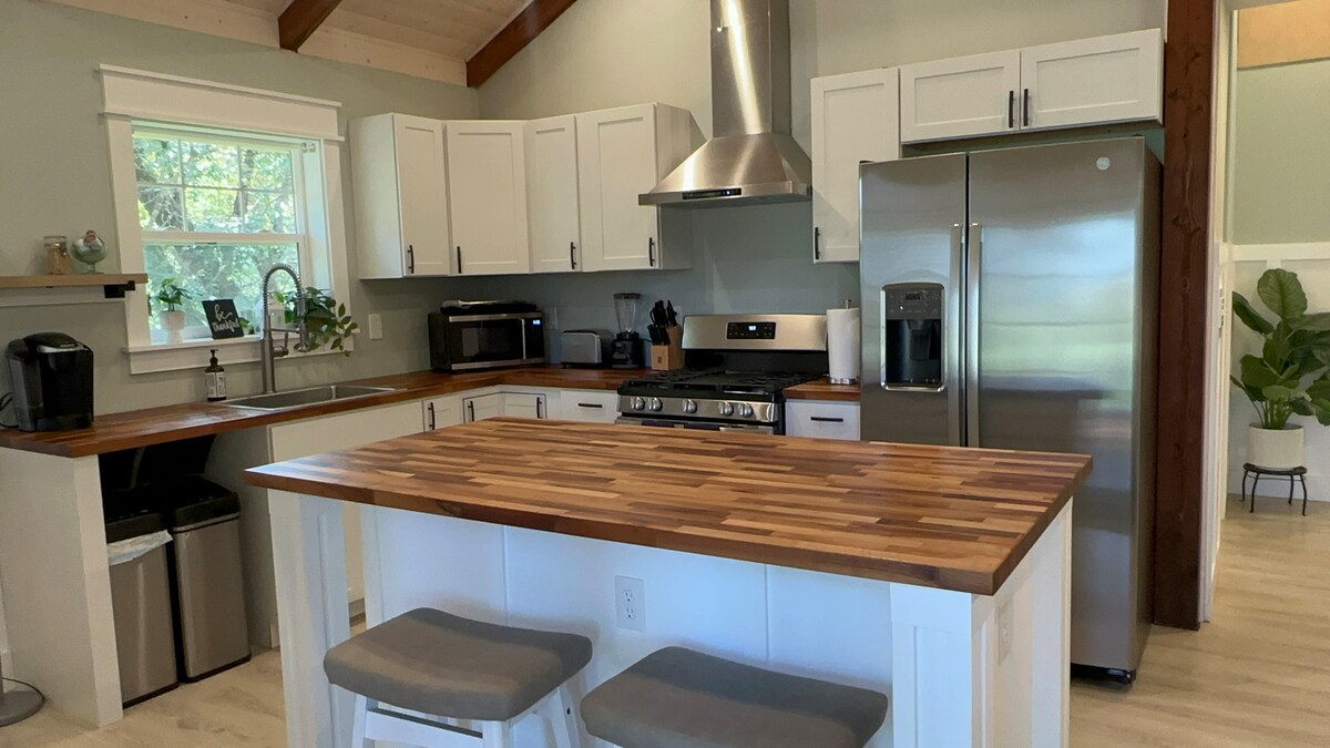 Spędź czas wśród sekwoi w pobliżu stawu rybnego w naszym eleganckim, nowoczesnym ośrodku z wieloma artystycznymi elementami. Niech napięcie z drogi rozpłynie się w naszej wannie z hydromasażem i spa jak deszcz, a następnie zrelaksuj się na naszych wygodnych łóżkach California King. Znajduje się w ekskluzywnej, cichej okolicy na wzgórzach nad Arcata, w pobliżu rozległych szlaków turystycznych z sekwoi. Odpręż się w naszym osłoniętym salonie z paleniskiem nad stawem. **Prosimy o zachowanie ciszy z uwagi na sąsiadów.**