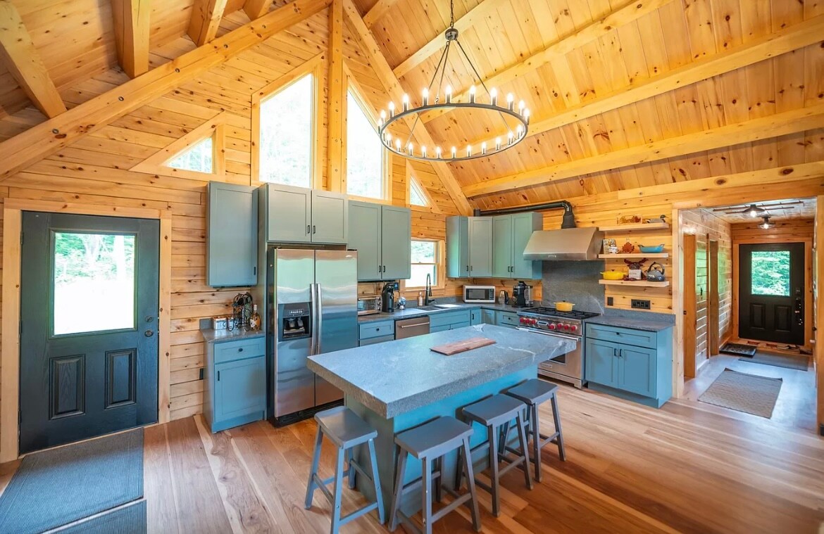 Domek z bali w Vermont – nowa konstrukcja z ładowarką do pojazdów elektrycznych!
