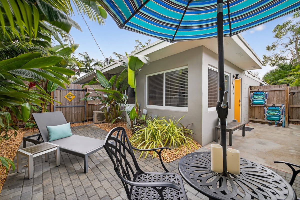 Romantycznie, czysto, prywatnie i cicho: idealne miejsce na relaks po dniu spędzonym na plaży lub w pracy. Nowoczesny wystrój, wysokiej klasy sprzęt i meble, 85-calowy telewizor Samsung Smart TV z systemem dźwiękowym Bose, prywatna weranda z grillem. Zaledwie 3 mile od plaży i 1 milę od głównej autostrady i95 i 1 milę od Wilton Manors. Spacer do sklepów spożywczych, barów i restauracji.