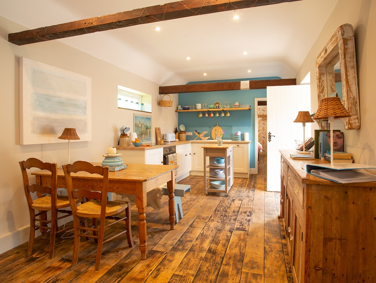 This studio loft has been recently refurbished with a stylish yet cosy feel. A perfect retreat with lots of creature comforts to make it the ideal base for exploring the surrounding area. Perfect for walkers, cyclists or a romantic getaway. Although attached to our house it is completely self contained with a separate entrance and ample parking. Well behaved dogs are welcome but we do ask that they are kept on leads. We have a secure location available for bicycles.