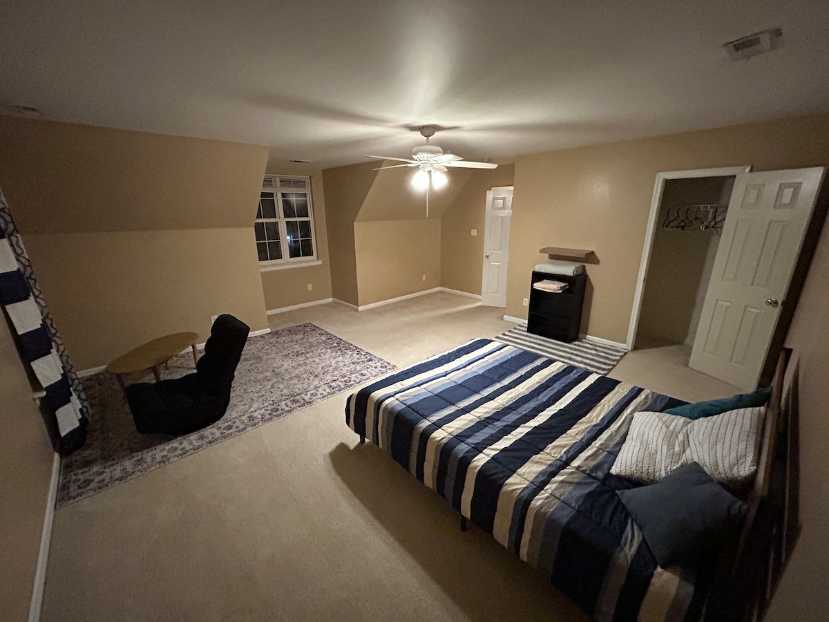 Zapomnij o swoich zmartwieniach w tej przestronnej i spokojnej przestrzeni. Ciesz się komfortowym pobytem z prywatnym wejściem, oddzielonym od głównego domu, z parkingiem przy drzwiach wejściowych. Prywatność jest najważniejsza! Wygodny dom z dala od domu. Dostęp do bujnego ogrodu. Łóżko typu queen, prywatna łazienka z prysznicem. Wyposażona kuchnia: kuchenka indukcyjna (dwie płyty), frytkownica powietrzna, kuchenka mikrofalowa, ekspres do kawy i lodówka. Naczynia, sztućce, garnki i przybory kuchenne są zapewnione. Podstawowe środki czystości. Pościel zmienia się co tydzień.