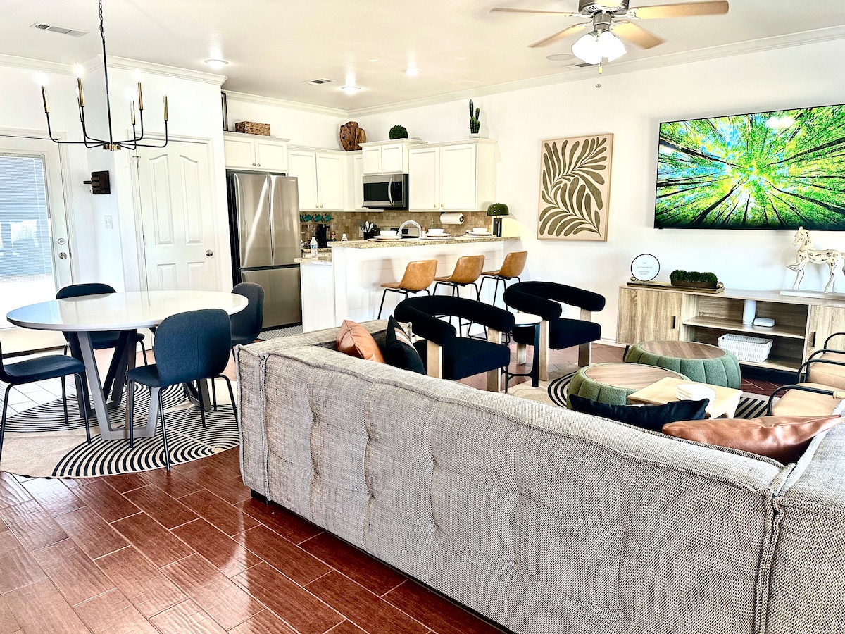 Doświadcz komfortu i stylu w naszym nowoczesnym domu położonym w spokojnej okolicy. Nasza doskonała lokalizacja sprawia, że w pobliżu znajduje się szpital Medical Center Hospital, centra handlowe, udogodnienia i popularne atrakcje, takie jak stadion Ratliff, UTPB i Ector County Coliseum. Idealny zarówno na pobyt rodzinny, jak i podróż służbową, nasz dom oferuje dużo miejsca i udogodnień, które sprawią, że Twój pobyt będzie wygodny i niezapomniany. Zarezerwuj teraz i ciesz się relaksującym pobytem w naszym pięknym domu.