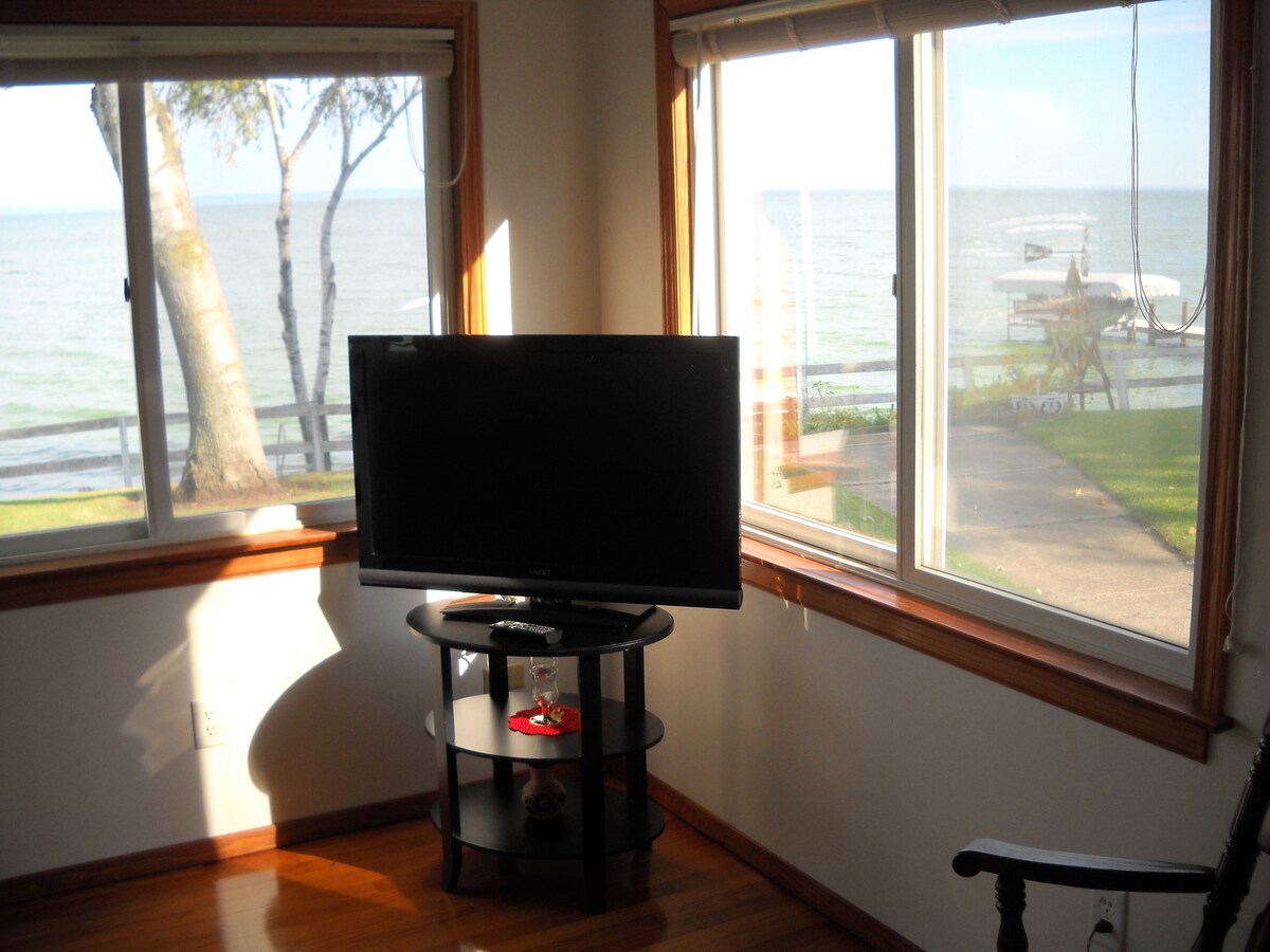 Furnished Cottage on Lake Winnebago with beautiful sunrises. 1 bedroom with queen bed. There is plenty of space for air mattresses in common areas. 1 queen air mattress available. One bath, full kitchen fully stocked with dining area, bring your own food to prepare. Bring your water toys or boat, launch nearby and dock access in warmer months with great fishing. Winter months, bring your snowmobile, trails nearby. Great ice fishing when lake is frozen and ice is safe.