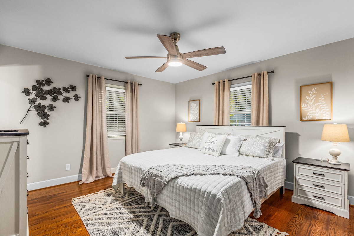 Odwiedź, pracuj lub odpoczywaj i zrelaksuj się w tym centralnie położonym domu GSO! Obudź się przy pięknym słońcu i napij się kawy lub herbaty, gdy będziesz zmierzał do miękkich szlafroków i kapci spa, aby zrelaksować się w przestronnej wannie z hydromasażem lub usiąść przy ciepłym palenisku. Albo po ciężkim dniu pracy w prawdziwej dedykowanej przestrzeni roboczej z dwoma monitorami i stacją dokującą, spędź wieczór na zewnątrz, aby zrelaksować się przy kieliszku wina. Przyjazne dla zwierząt, zaledwie kilka minut do centrum miasta i terenów rekreacyjnych. Przytulny i nowoczesny dom, który ma wszystko!