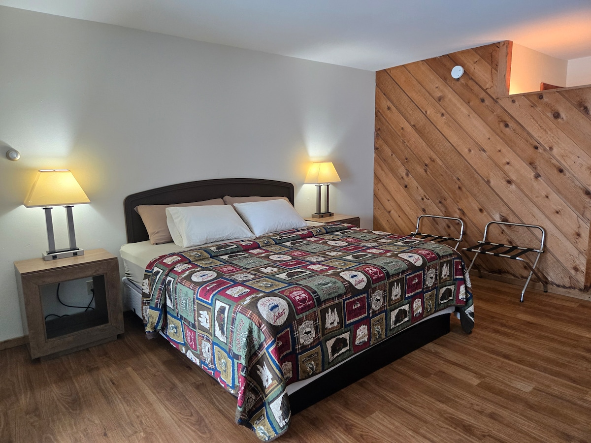 Welcome snowmobilers! We have plenty of trailer parking, ride snowmobile right up to your door, trail 5 just seconds away, and hot food at Trap N Fish Lodge across the road! Ask us how you can rent the entire motel for large groups for a discounted rate! Room 7 is a cozy studio room perfect for the solo fishermen coming up for the week or a couple looking for a weekend get away. Includes queen bed and futon to sleep up to 3 comfortably. Kitchenette, soap and towels, wifi, and Roku.