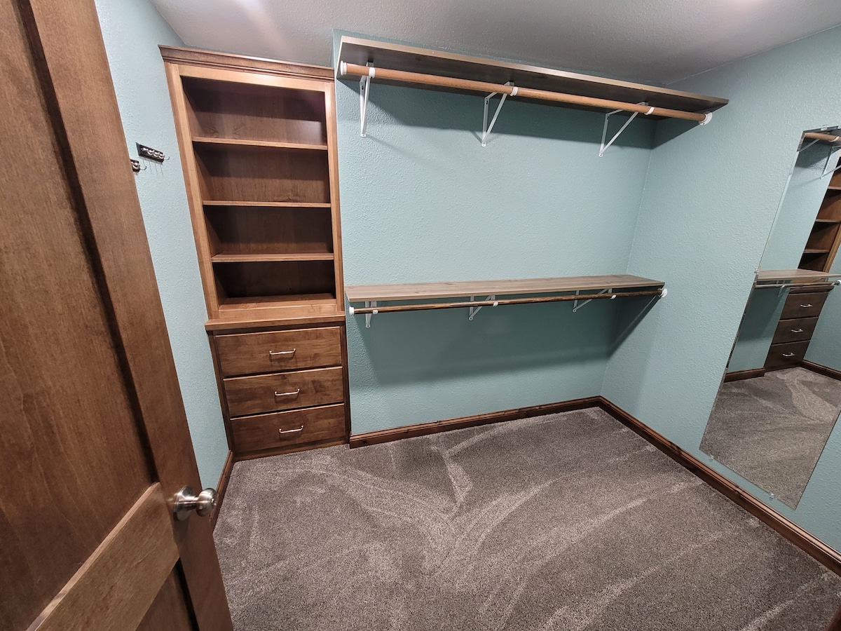 Witamy w niebiańskim apartamencie w Jamestown, ND. Ten całkowicie odnowiony apartament z 1 sypialnią i 1 łazienką znajduje się na niższym poziomie naszego domu i ma własne wejście. Apartament ten posiada dużą przestrzeń mieszkalną oraz kuchnię/jadalnię, która jest w pełni zaopatrzona w wszelkie przybory kuchenne potrzebne do przygotowania posiłku. W łazience znajduje się zarówno prysznic, jak i wanna. Zwierzęta nie są akceptowane. Na kanapie może spać dodatkowy gość.