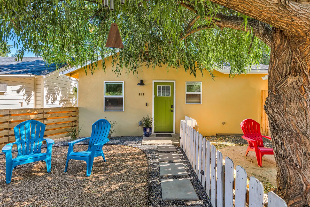 Escape to this charming private EDU cottage with its own entrance and convenient parking. This cozy retreat includes a mini-fridge, microwave, Keurig, fast WiFi, and TV with Netflix. The soothing décor, custom-tiled bathroom, and spa-style shower make it a relaxing getaway. Located 3 miles from historic downtown Grants Pass in Oregon's beautiful farm country, the property features a tranquil pond alive with birds in spring and summer. Unwind and enjoy the perfect blend of comfort and nature.