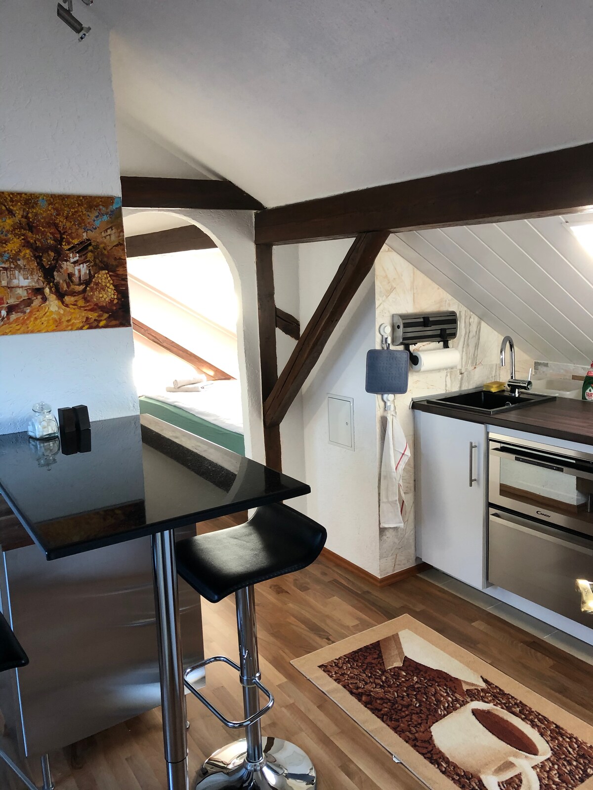 Apartament ma 26 m², znajduje się na parterze i jest przeznaczony dla 1 osoby (maksymalnie 2). Jest wyposażone w nową kuchnię, telewizor Smart TV, łóżko 1,40 m. Znajduje się 35 km na południe od Monachium, 13 km od jeziora Starnberg i 19 km od miasta Bad Tölz. Piękne Isarauen można dotrzeć pieszo w kilka minut. Supermarket w odległości 1 minuty jazdy samochodem. Dostępne są również dobrze rozwinięte sieci rowerowe. W sąsiedniej miejscowości jest połączenie kolejowe do Monachium.