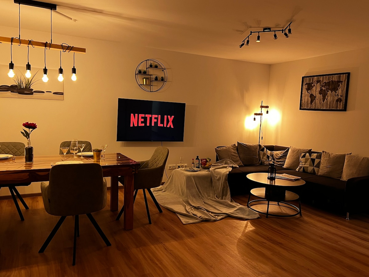 To stylowe mieszkanie oferuje idealne połączenie komfortu i centralnej lokalizacji. W zaledwie 15 minut spacerem dotrzesz do centrum miasta, a przystanek kolejowy jest oddalony o 2 minuty. Prywatny parking jest bezpośrednio częścią nieruchomości. Stałe miejsce pracy z szybkim internetem umożliwia produktywną pracę. Kuchnia jest w pełni wyposażona, a łóżko sprężynowe 1,40 m i telewizor Smart TV (Netflix, DAZN, YouTube) zapewniają relaks. Niezbędne rzeczy, takie jak pościel, są wliczone w cenę.