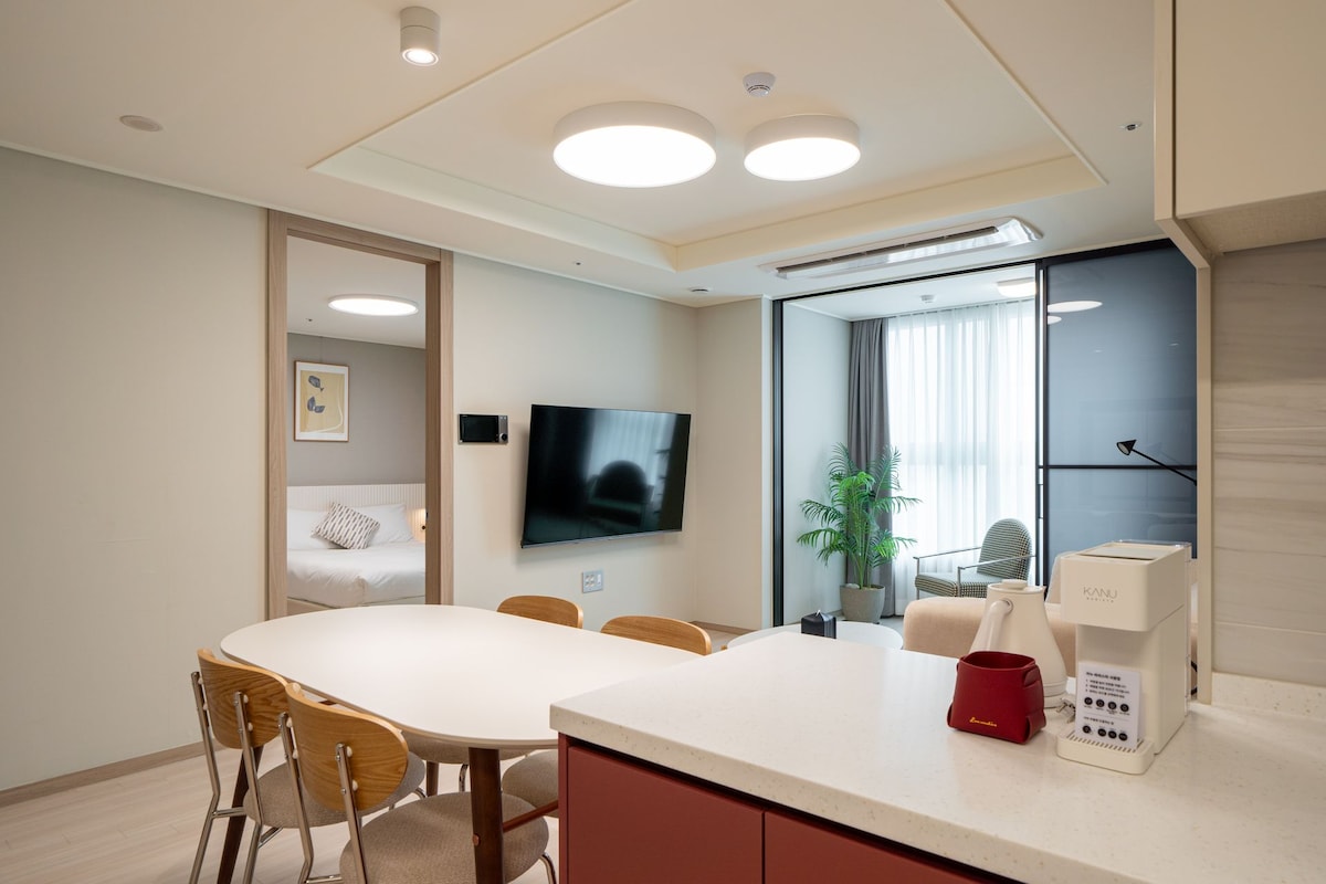 HarborHouse stay 826 (Nowobudowane zakwaterowanie z ondolem) 10 pyeongów, typ studio (1 materac rodzinny) (1 łóżko futonowe typu Queen) (Zakwaterowanie w Ondolu, w którym nawet małe dzieci nie muszą się martwić o upadki) (Nowa opcja basenu z zainstalowanym balkonem i wanną) Wolmido (15 minut samochodem) Chinatown (10 minut samochodem) Sinpo International Market (10 minut samochodem) Port lotniczy Seul-Inczon (30 minut samochodem) Pororo Theme Park (15 minut samochodem) 65-calowy telewizor QLED (Netflix za darmo, zainstalowany soundbar) Montaż folii na okno balkonowe (Blokowanie światła słonecznego, blokowanie linii zewnętrznej) Instalacja bezpośredniego oczyszczacza wody w Cheongho (Uzupełnij wilgoć, aby nie zabrakło 2%) Zainstalowana słuchawka prysznicowa Dr.Fiel (Moja skóra jest cenna♥) Wyposażony w ładowarkę do telefonu komórkowego (iPhone, Galaxy) Wyposażone w zastawę stołową dla dzieci (kubki na wodę, łyżki, widelce, zastawa stołowa) Pralka, odkurzacz bezprzewodowy Kuchenka mikrofalowa, oczyszczacz powietrza Wyposażone w składany stół do jadalni Wyposażone w składany stojak na pranie Przestronny parking (Parking jest możliwy dla 899 samochodów w budynku) (Bezpłatne korzystanie po zarejestrowaniu pojazdu w czasie pobytu)