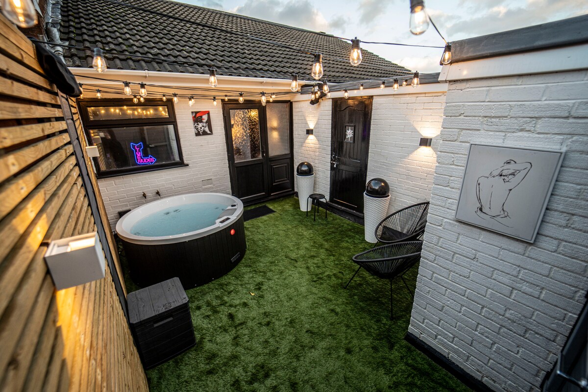 Play Queen to wyjątkowe, zabawne miejsce na wypoczynek z ogrodem relaksacyjnym z jacuzzi. Wyposażony w huśtawkę dla dorosłych, łóżko w stylu vintage z 4 miedzianymi słupkami, dźwiękoszczelny pokój zabaw z czerwonymi aksamitnymi ścianami i lustrami na sufitach. Posiada profesjonalny pokój ze słupkiem do striptizu. Możesz również skorzystać z naszych niestandardowych szlafroków Play Queen i wszystkich udogodnień Red Room, które widzisz na zdjęciach. To najlepsze miejsce do zabawy i odkrywania, gdziekolwiek zaprowadzą Cię Twoje pragnienia. Znajduje się w mieszkaniu w West Midlands.