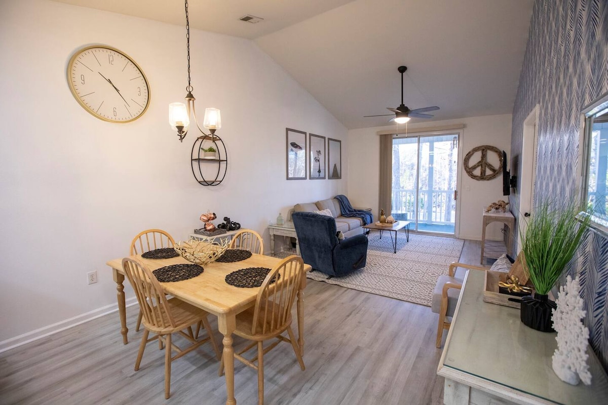 Odpręż się i zrelaksuj w tej odnowionej, spokojnej, stylowej przestrzeni. Dogodnie usytuowany w pobliżu wszystkich atrakcji Myrtle Beach. Fantastyczny wypad na rodzinną wycieczkę lub wakacje na plaży! Skorzystaj z bezpłatnych udogodnień związanych z kawą Keurig. Śpij, na co naprawdę zasługujesz, na naszych najlepszych łóżkach typu king-size w obu sypialniach! Rozsuwana kanapa pomieści jeszcze dwie osoby na wysokiej jakości materacu z pianki. Rozkoszuj się kawą na leżakach na patio z szezlongiem w lesie. Basen i jacuzzi na miejscu od kwietnia do października.