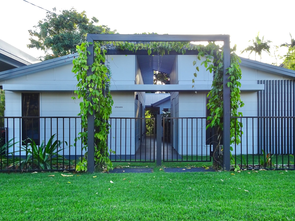 Located in a sleepy little beach town that time forgot. Where ancient palms shade your path and prehistoric creatures still roam the land. The slow monday sits on the edge of protected forest (a cassowary corridor) just a stroll from the beach. A modern take on the classic Australian beach shack, the house is designed for the Queensland tropics. There are two pavilions, one for living and the other for sleeping, all with large glass sliding doors that open up to let the environment in.