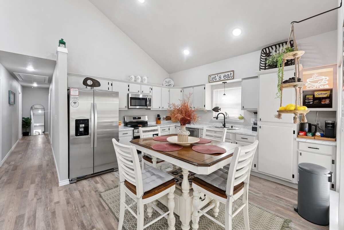 Zrelaksuj się w naszym spokojnym domku, który obejmuje zalesione krajobraz z paleniskiem, drewnianym tarasem i podkówkami. Znajduje się na szlaku Dogwood Trails, gdzie każdej wiosny w marcu można zobaczyć drzewa pełne białych kwiatów. Odwiedź pobliskie winiarnie, Mineola Nature Preserve, Tyler State Park i oczywiście Lake Fork! Ciesz się zakupami antyków, butikami i lokalami z muzyką na żywo! * Ze względu na sposób, w jaki Airbnb pobiera opłaty, im więcej nocy zarezerwujesz, tym niższa będzie stawka za noc.