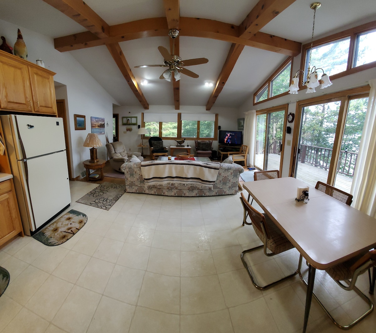 Secluded lake home on beautiful East Horsehead lake. Features open concept dining, living, and kitchen with 2 bedrooms and a loft. Main living space features a queen futon as additional sleeping accommodation. Large deck with seating and grill leading to backyard with firepit and lake frontage. 50" TV smart TV in living room with 32" Smart Tv's in the bedrooms and loft. Starlink WIFI and streaming services. Many activities close by and only 20 minutes from Minocqua, Rhinelander, & Tomahawk.
